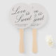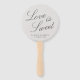 Un élégant ventilateur de main de mariage avec les mots "L'amour est doux" et vos noms et mariage datent sur un arrière - plan gris. L'arrière - plan peut être changé en n'importe quelle couleur. Si vous avez un mariage extérieur, ces ventilateurs de main sont à offrir à vos invités pour les aider à garder le cool et aussi faire un grand souvenir.