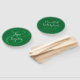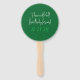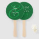 Ventilateur mariage portable en vert. Polices modernes pour les noms du couple sur le devant, avec un grand signe "et". Inscrire la date de la cérémonie et "Pour avoir et tenir à partir de ce jour en avant" à l'arrière. Montré sur le ventilateur rond, mais ce design fonctionne sur toutes les formes.