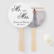 Ventilateur de main de mariage élégant avec un design de typographie simple avec les mots "Mr et Mrs" ainsi que vos noms et date mariage dans une calligraphie noire formelle sur un arrière - plan blanc. L'arrière a votre photo préférée. Un design élégant qui conviendra parfaitement à un mariage de cravate noir.