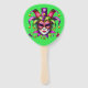 This paddle fan is shown in a festive Mardi Gras Jester mask print.
