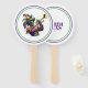 This paddle fan is shown in a festive Mardi Gras musician print.