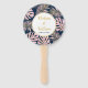 Ventilateur rond bleu marine feuille rose et or. Il présente des feuilles de Split Leaf Philodendron (Monstera deliciosa) ou Plante de fromage suisse et feuilles de palme en rose vif avec contour or sur arrière - plan bleu marine. Votre libellé est dans un cadre blanc avec contour doré.