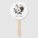 Un ventilateur de mariage floral noir et blanc, personnalisable selon les détails de votre événement.