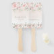 Un ventilateur de mariage rose vif avec une aquarelle peinte rose vif rose avec de la verdure d'eucalyptus argenté et un arrière - plan d'aquarelle douce.
