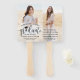 Add a cool personalized touch to a high school or college graduation celebration with elegant custom photo rectangular hand fans. This template is simple to personalize with the graduate's pictures, name, class year and school. Include any additional wording of your choice such as degree, honors, thanks mom and dad, or a favorite inspirational quote. The font styles, colors and overlay opacity can also be customized with the Zazzle design editor tool. The modern minimalist black and white design features 2 photos of the graduate, trendy script calligraphy, and elegant classic typography. Create your own stylish and unique keepsake favor that's perfect for an outdoor graduation party or commencement ceremony. Congratulations to the graduate!