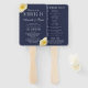 Simple moderne Marine bleu jaune rose Script de mariage floral Ventilateur à main. Ventilateur mariage simple et moderne avec programme de mariage. Ce modèle de menu mariage moderne a de belles roses jaunes dans les coins sur un arrière - plan bleu marine foncé et un texte blanc moderne. Vous pouvez facilement customiser tout le texte sur le ventilateur - personnalisez-le avec les noms de mariée et de mariée, la date et l'emplacement du mariage, programme de mariage...
