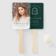 Cet élégant ventilateur de la main de graduation comporte une photo du diplômé avec une superposition de texte vert foncé. Le mot "diplômé" apparaît dans la typographie décorative des contours. Ajoutez le nom du diplômé, l'école et la classe année ci-dessous. Le dos présente le mot "félicitations" au-dessus d'une élégante crête vintage entourant une initiale de monogramme blanc sur un arrière - plan vert, avec le nom, l'école et la classe année ci-dessous.