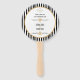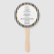 Jaune doré, noir et blanc art déco rétro mariage motif de bienvenue ventilateur de main. Un autocollant style années 1920. La décoration est composée d'une palette de couleurs jaune or, noir et blanc et de motifs inspirés du style art déco et d'un motif rayé noir et blanc sur l'arrière - plan.