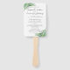 Des feuilles de palmiers tropicaux modernes bordent ce programme de ventilateur simple et élégant pour les mariages de destination de plage tropicale. Couleurs vertes et blanches luxuriantes pour un mariage insulaire. Cliquez sur CUSTOMISER PLUS LOIN pour modifier la couleur, les polices et l'agencement du texte de l'arrière - plan. Visitez la boutique Custom Paper Works Zazzle pour coordonner les articles de papeterie de jour de mariage.