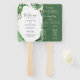 Ce fan de programme de mariage géométrique de palmier tropical sauvage est parfait pour un mariage sur la plage ou à destination. Le design comprend un éventail exotique de feuilles de bananiers d'aquarelle verte, fougères, feuillage, plantes botaniques et verdure pour une sensation tropicale estivale. Indiquez le nom de la mariée et du marié, la date et le lieu du mariage, le message de remerciement, l'ordre de service et la fête de la mariée. Commandez vos programmes assemblés ou non assemblés.
