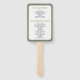 Feuilles tropicaux de palmiers séchés, pampas herbe et protéa fleurs vert arche botanique mariage programme de ventilateur main. Ce joli design mariage est orné d'un cadre en arc sur arrière - plan teinté vert. Dans le cadre il y a un bouquet de feuilles de palmiers séchés, des fleurs de protéa et de l'herbe de pampas.