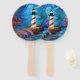 Beau phare rayé rouge et blanc sur une rocheuse surélevée entourée de fleurs et bleu eau/ciel IA Art créé par minx267