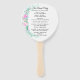 Joli ventilateur de programme de mariage fait en blanc, avec des graphiques aquarelle de fleurs pastel sur le côté gauche. Personnalisez le texte, des deux côtés du ventilateur, pour votre jour de mariage.