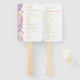 Programme de ventilateur à main mariage indien avec des motifs de cachemire violet et or. Idéal pour les mariages traditionnels et autres événements spéciaux.