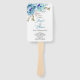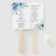 Fleurs d'aquarelle bleu et vert menthe florale photo programme mariage ventilateur main. Un joli design mariage qui comprend des fleurs d'aquarelle dans les tons bleu et vert menthe et feuille. Les noms sont en typographie de script.