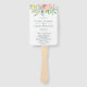 Éventails de mariage floraux élégants avec une bordure supérieure de verdure et de fleurs aquarelles en rose, pêche, lavande, blanc et bleu. Ces éventails de mariage fourniront à vos invités l'ordre du service et sont parfaits pour un mariage printanier.