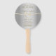 Ventilateur de main simple, élégant, métallique or et argent de programme de mariage avec coeur de corde et script moderne.