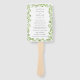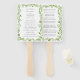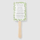 Éventail de main de programme de mariage rustique avec vos détails entourés de feuilles d'olive. Vos détails sont dans une police de couleur gris moyen. Le devant comporte les événements de votre cérémonie et le dos comporte votre cortège de mariage. Les éventails à main sont parfaits pour un mariage en plein air en été.