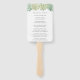 Éventails de mariage botaniques avec une bordure supérieure et inférieure constituée de succulentes à l'aquarelle verte sur le devant et une bordure supérieure au dos. Vos détails sont dans une police de caractères gris doux. Ajoutez les événements de votre cérémonie au recto et votre cortège de mariage et votre message de remerciement facultatif au verso. Ces éventails aideront à garder vos invités au frais lors d'un mariage en plein air et leur fourniront l'ordre du service. Ceux-ci font également un excellent souvenir et sont parfaits pour un mariage dans le désert au printemps ou en été.