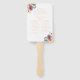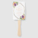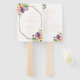 Ce ventilateur au programme, doté d'un bouquet audacieux de violet, pêche et vert floral botanique, est un excellent moyen d'accueillir vos invités et de les garder cool par temps chaud. Le côté avant les remercie d'être venus. L'autre côté montre les détails de votre cérémonie et de votre fête de mariage. Tous les champs peuvent être customisés à vos spécifications