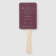 Ventilateur de main programme de mariage élégant avec un script de calligraphie blanc moderne avec un arrière - plan violet pour créer un design qui est parfait pour les mariages de tous les styles et de toutes les saisons. Personnalisez l'avant du programme de mariage moderne avec vos noms, date et emplacement du mariage, et message de remerciement personnalisé. Le ventilateur du programme de mariage inverse pour afficher la commande de service et une liste de votre fête de mariage. Le ventilateur à main du programme de mariage violet a été créé pour coordonner avec notre collection de mariages Modern Elegance.