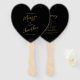 Ces ventilateurs de programme de mariage personnalisés disposent d'un design de script en lettres d'or fantaisie moderne et minimaliste sur un simple arrière - plan noir. Personnalisez avec vos noms et la date du mariage sur le devant et les détails du programme de mariage sur le dos. Meilleurs voeux pour votre mariage et mariage ! Conçu par Susan Coffey.