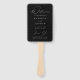 Ventilateur de main programme mariage élégant avec un script de calligraphie blanc moderne avec un arrière - plan noir pour créer un design qui est parfait pour les mariages de tous les styles et de toutes les saisons. Personnalisez l'avant du programme de mariage moderne avec vos noms, date et emplacement du mariage, et message de remerciement personnalisé. Le ventilateur du programme de mariage inverse pour afficher la commande de service et une liste de votre fête de mariage. Le ventilateur de programme de mariage noir et blanc a été créé pour coordonner avec notre collection de mariages Modern Elegance.