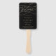 Ce programme de mariage noir à calligraphie dorée romantique sous forme d'éventail à main est parfait pour un mariage simple. Le design classique moderne présente des volutes fantaisistes et des fioritures fantaisistes avec une typographie élégante et superbe en faux or champagne doré à lettrage manuel. Incluez le nom de la mariée et du marié, la date et le lieu du mariage, le message de remerciement, l'ordre du service et le cortège nuptial. Commandez vos programmes assemblés ou non assemblés.