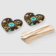 Turquoise lenses with antique watch with brass gears and golden keys on rusty, brown background. Steampunk style.