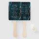 This elegant, modern wedding program fan features a teal blue agate background trimmed with silver faux glitter. The text appears in silver gray handwriting and copperplate fonts.