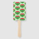Ventilateurs à la main pour une fête d'anniversaire One in a Melon. Elles sont ornées d'une pastèque souriante, d'un dessin de caricatures et de mots verts et rouges sur un arrière - plan vert. Ces assiettes amusantes et gourmandes ne peuvent pas attendre pour faire partie de votre fête. Ajoutez-les simplement à votre panier (prenez des autocollants pendant que vous êtes dans la région), et faites une merveilleuse fête.