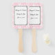 Ce ventilateur mariage à pagaie est affiché dans une impression arrière - plan florale rose pâle avec des noms d'échantillons et la date, personnaliser et changer le texte à votre.