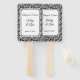 Ce ventilateur de pagaie mariage est présenté avec une élégante impression damassée en noir et blanc et des noms d'échantillons et de date. Customisez cet élément et modifiez les noms et la date à ce dont vous avez besoin.