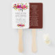 Ventilateur de programme de mariage aquarelle floral avec des fleurs violettes, bordeaux et rouges vives avec une touche d'or et parties scintillant d'or rose.