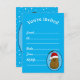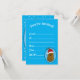 Adorable funny cute happy brown cartoon potato wearing a red and white Santa hat. The potato is in a cartoon art style and coloured brown, he has stick arms and fingers and a big happy smile with dots for eyes. The Santa hat on his head is red with a white trim and a white pompom hanging down. He is inside a light blue oval shape with a dark blue frame and two green holly leaves with two red berries at the top of the oval. The background colour is a bright light blue with white snowflakes floating about to give a festive feel to these cute seasonal invitations.