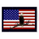 A Bald Eagle scans the sky from his perch on a tree branch; superimposed on a flag of the United States.