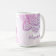 The Everbloom Mandala 15 oz. Personalized Mug in dreamy pink and soft violet adds a meditative touch to your morning routine or any time you need that sustaining cup of coffee, tea, or hot chocolate. It also makes a thoughtful gift for your favorite yoga teacher. This extra-large size is especially cosy to wrap your hands around. Would also make a thoughtful gift for your favorite yoga teacher. Available in an 11 oz. version as well.
