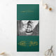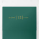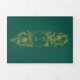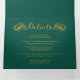 Vintage gold floral frame with initials on evergreen green trifold wedding invitation. The elements of this wedding invite are the beautiful vintage gold frame made of acanthus leaves and flowers with your initials and the fonts on green background.