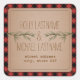 A wedding address sticker featuring an illustration of evergreen branches. Background is red and black plaid. Personalize the text with your names and address.