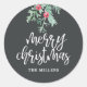 Stylish stickers featuring watercolor berries and foliage and says "merry Christmas" in a stylish modern brush script font.