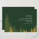 Gold evergreen trees at left with white text and emerald green background.