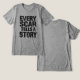 Celebrate your journey with our "Every Scar Tells A Story" shirt. This powerful tee honours resilience, strength, and the stories behind our scars. Perfect for those who embrace their experiences and wear their stories proudly. Explore our collection of resilience apparel and survivor shirts. Own your story.