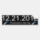 Everybody's Last Day Bumper Sticker: 12 21 2012 apocalypse apocalyptic end of days day world nuclear war earth comet meteor dinosaur dinosaurs extinct extinction bush bush's december january 20 2009 spoof satire quirky apocalypse