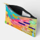 This abstract art design uses the happy colours of yellow, turquoise, pink. orange, and green for a burst of lively fun.