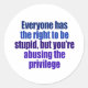 Tired of someone having too many dumb moments! Caution them that "Everyone has the right to be stupid, but you're abusing the privilege."