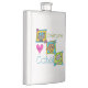 The product is a good size and came exactly as it was pictured. The lid is not attached to the flask, which could be dangerous on drunken nights... The print came out surprisingly well and looks very sharp. Would definitely recommend.