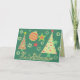 Everything Christmas holiday greeting card features a teal front with two decorated holiday trees, stars, ornaments, pretty cream colored snowflakes, and text that reads Let It Snow. The inside is a pale green with a small star and an area you can add your text message and name(s). We have matching postage, stickers, return address labels, and envelopes.