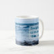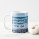 Everything is possible with God motivational Christian quote mug with beautiful beach and waves photography.