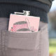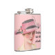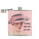 This flask features a vintage image of a woman in a fancy hat, on a customizable pink background with the customizable text, "Everything Tastes Better With Vodka".
