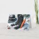 This whimsical holiday card showcases evidence of the snowman. Perhaps he was caught in a snow storm or just on his way to a holiday party, This card features his top hat, boots and a carrot nose. A little humour for the holiday season.